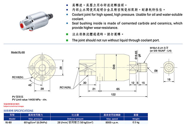 冷卻液回轉(zhuǎn)接頭(RJ-80)