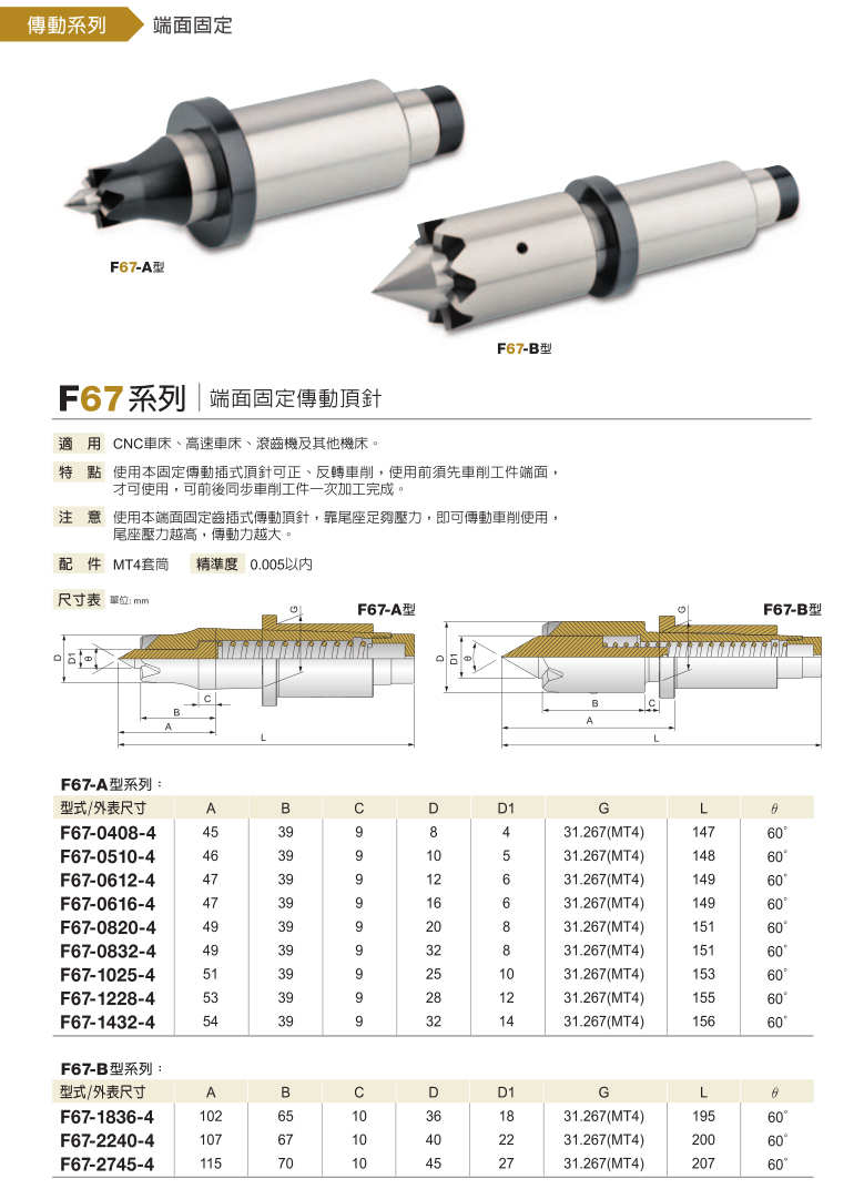 F67端面固定傳動頂針