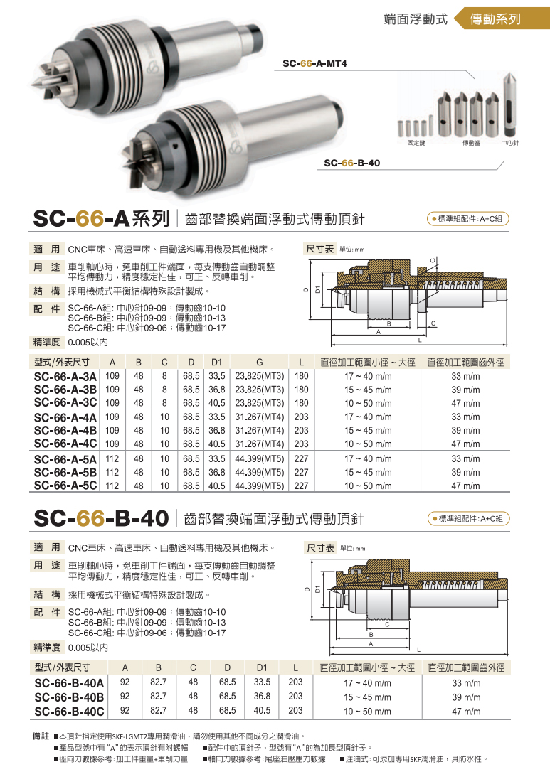 SC-67-A齒部替換式端面固定傳動頂針