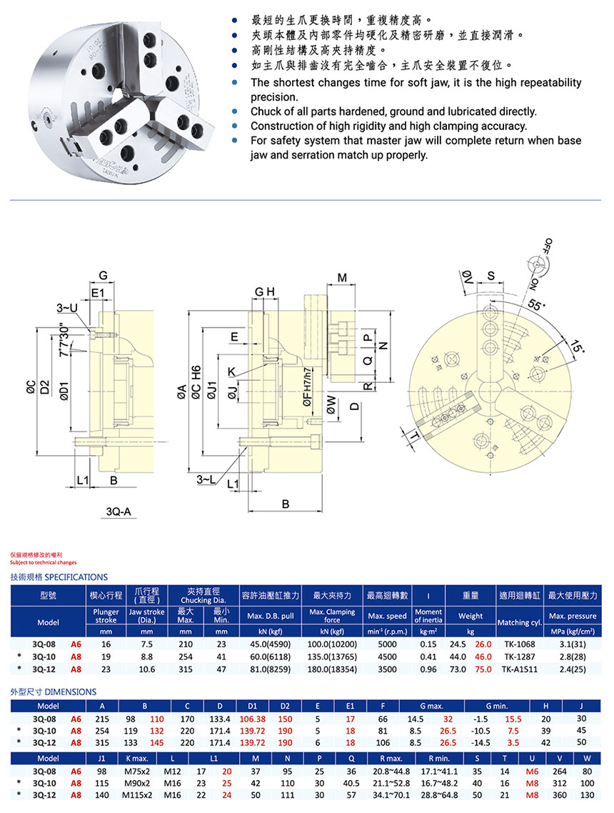 3V-A 立車用中實(shí)動(dòng)力夾頭